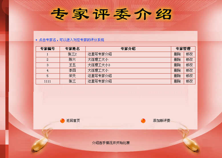 1.评分专家管理系统 评分专家信息 添加 删除 修改