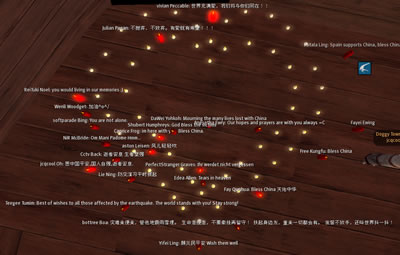 点击黑色板,拿到蜡烛后,从inventory-China Bless Candle-放到地上,搬在合适位置上,点击蜡烛后,在chat里输入: /512 祝福的话
