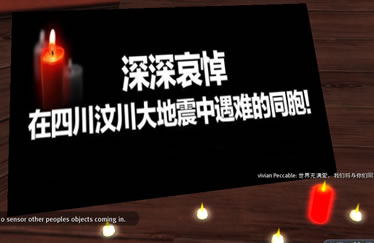 今天到中国船,发现了船的一角,汶川地震哀悼活动,用大大小小的蜡烛摆成了心形,纪念逝去的人们.加油中国.