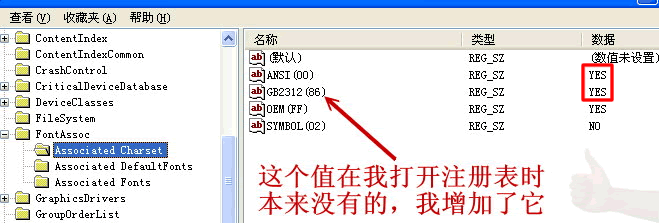 [HKEY_LOCAL_MACHINE\System\CurrentControlSet\Control\fontassoc\Associated CharSet]