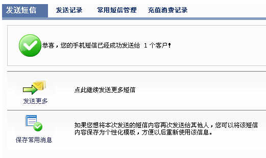 发短信一次成功:在短信会多出[阿里软件字样],速度不错。