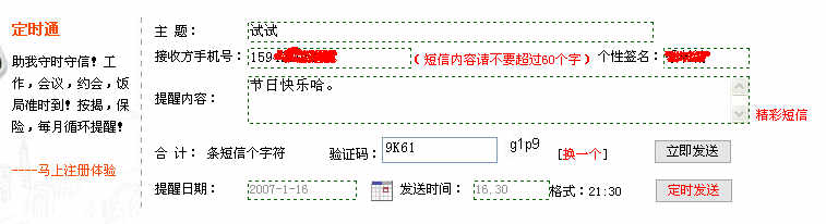 速度不错,两条短信均成功,有时提示验证码错误,再试就好了。 不注册也可以发短信,这是这个网页的优点。注册后享受更好的服务: